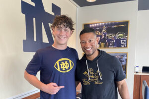 Joseph Reiff poses with Notre Dame coach Marcus Freeman during Reiff’s recruiting journey.